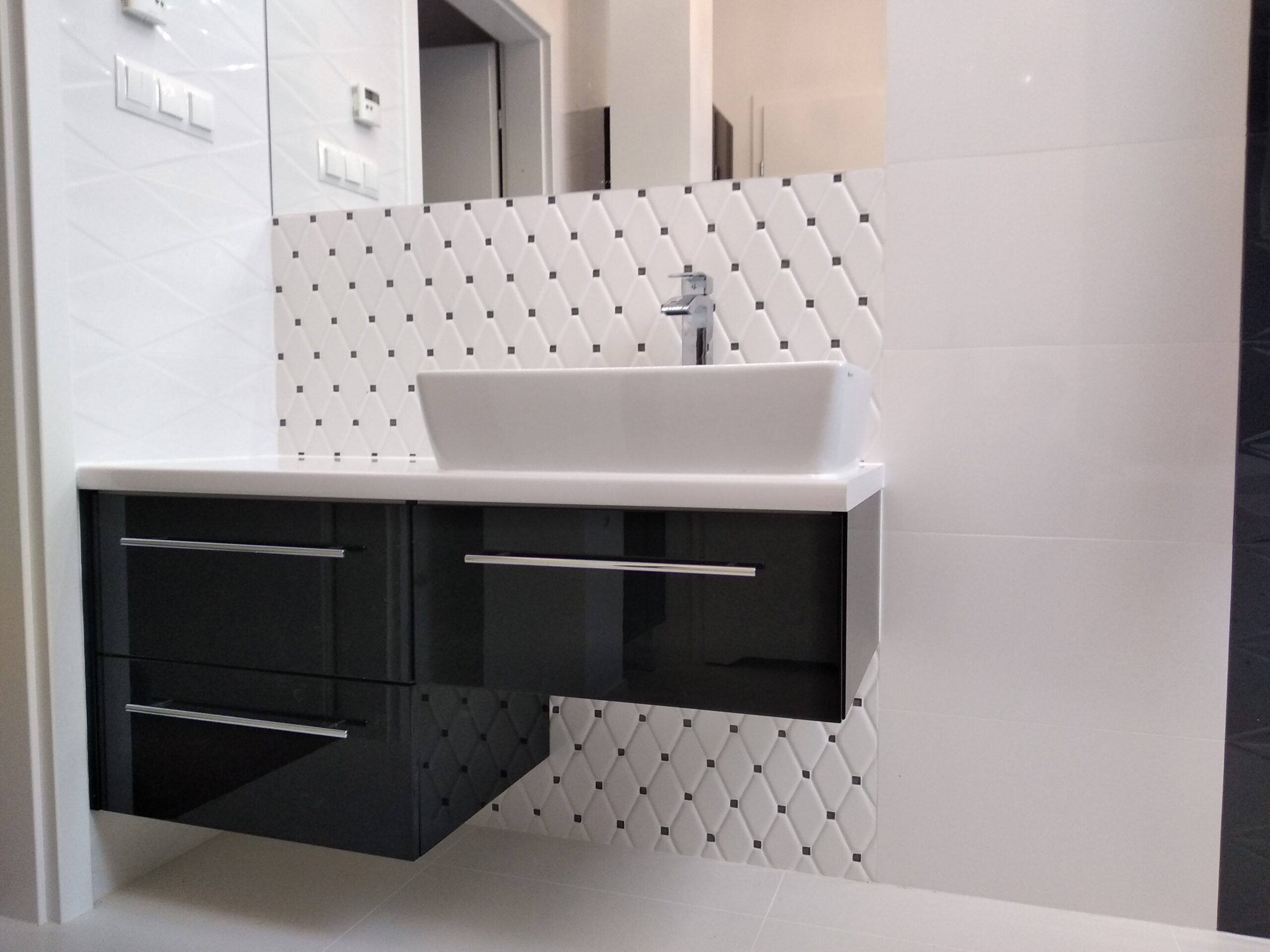 Zawsze zaczynamy od pomiaru na miejscu. Dzięki temu projekt idealnie dopasowuje się do przestrzeni i unikamy niespodzianek podczas montażu.